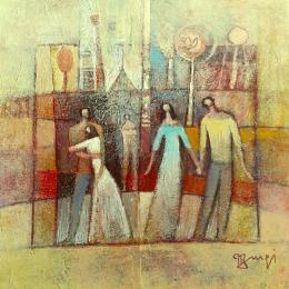 AM79 HEUREUSE RENCONTREPainting AM79 HEUREUSE RENCONTRE by Burgi Roger | Painting Figurative Society Landscapes Life style Acrylic