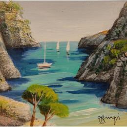 Calanque aux Pins 2 AQ33Painting Calanque aux Pins 2 AQ33 by Burgi Roger | Painting Figurative Landscapes Marine Acrylic