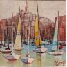 This unique and original contemporary artwork "Régate à Marseille 2 AQ57" on the subjects of Landscapes, Marine has been created by the contemporary artist Burgi Roger.