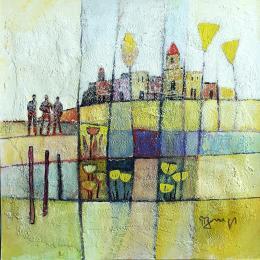 This unique and original contemporary artwork "AL18 PAYSAGE JAUNE" on the subjects of Life style, Architecture, Landscapes has been created by the contemporary artist Burgi Roger.