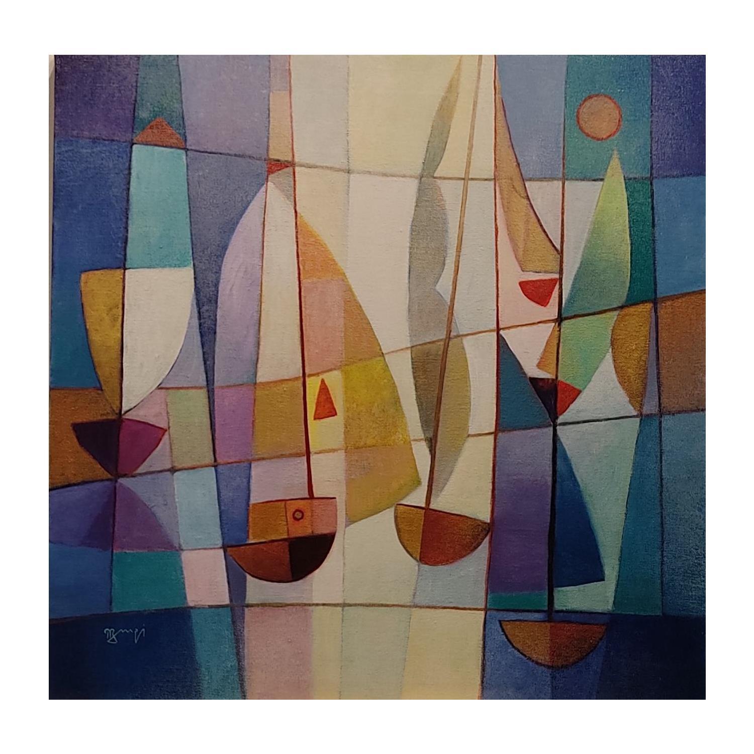 This unique and original contemporary artwork "Toutes voiles dehors AN 152" on the subject of Marine has been created by the contemporary artist Burgi Roger.