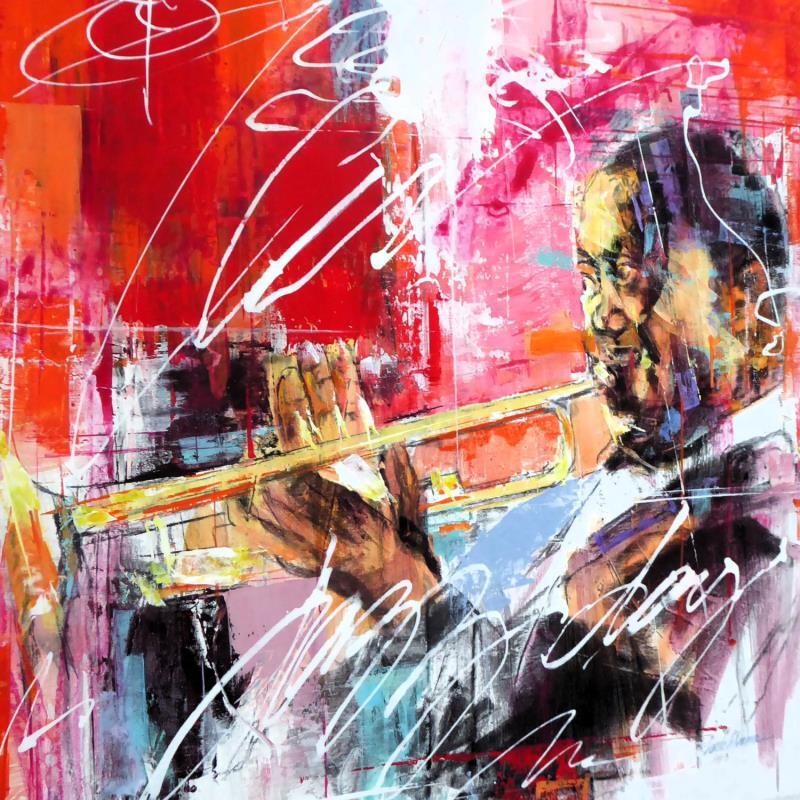 This unique and original contemporary artwork "Jazz Swings" on the subject of Music has been created by the contemporary artist Silveira Saulo.