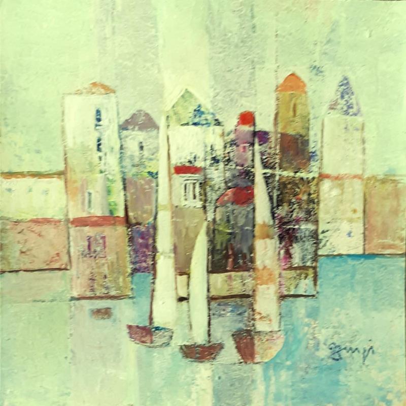 This unique and original contemporary artwork "AL70 COMPOSITION BLEUE" on the subjects of Marine, Urban has been created by the contemporary artist Burgi Roger.