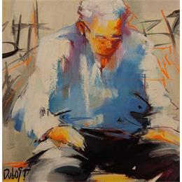 Anne Dubost is an award-winning French artist who enjoys capturing in her paintings people's fragility, determination, sensuality, as well as their transience. To find Anne Dubost's true intention one must read between the lines. The suggestion is indeed at the heart of her process, which spreads colours and textures in order to envelope the subjects with a halo. These circular movements, present in the paintings, lead the artist's characters in a dance that exacerbates the spinning palette, its tonalities and the contrasts packed with energy. A luminous work that contains all the vibrations of the world or, in the words of Régis Broustet, "a palette of spinning colours, much like a bouquet of fireworks".