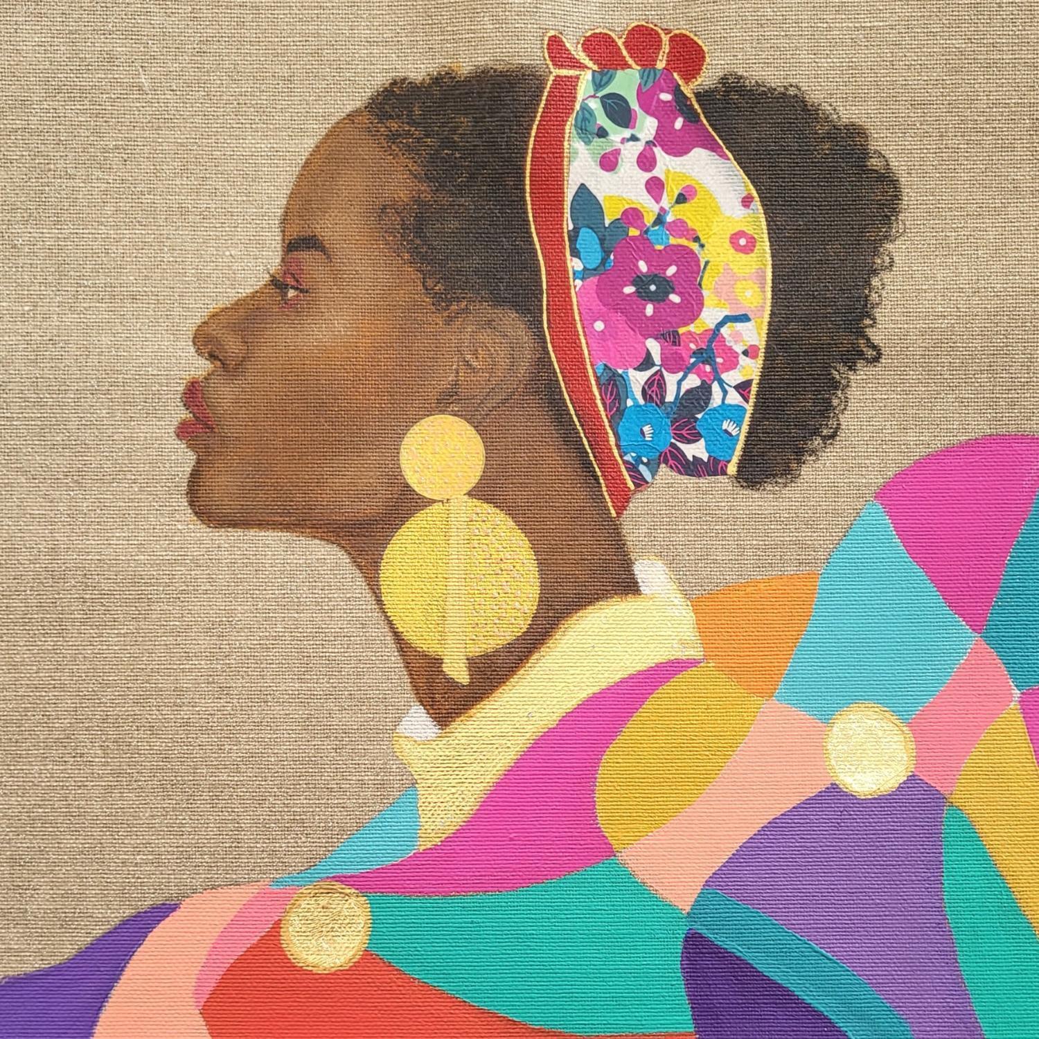 This unique and original contemporary artwork "Assata" on the subject of Portrait has been created by the contemporary artist Rosângela.