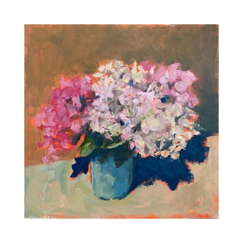 This unique and original contemporary artwork "BOUQUET HORTENSIA DU JARDIN" on the subject of still-life has been created by the contemporary artist Morales Géraldine.