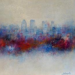 This unique and original contemporary artwork "Blissful Skyline" on the subject of Urban has been created by the contemporary artist Coupette Steffi.