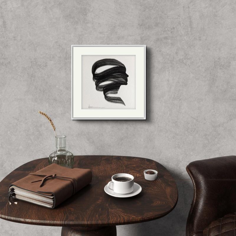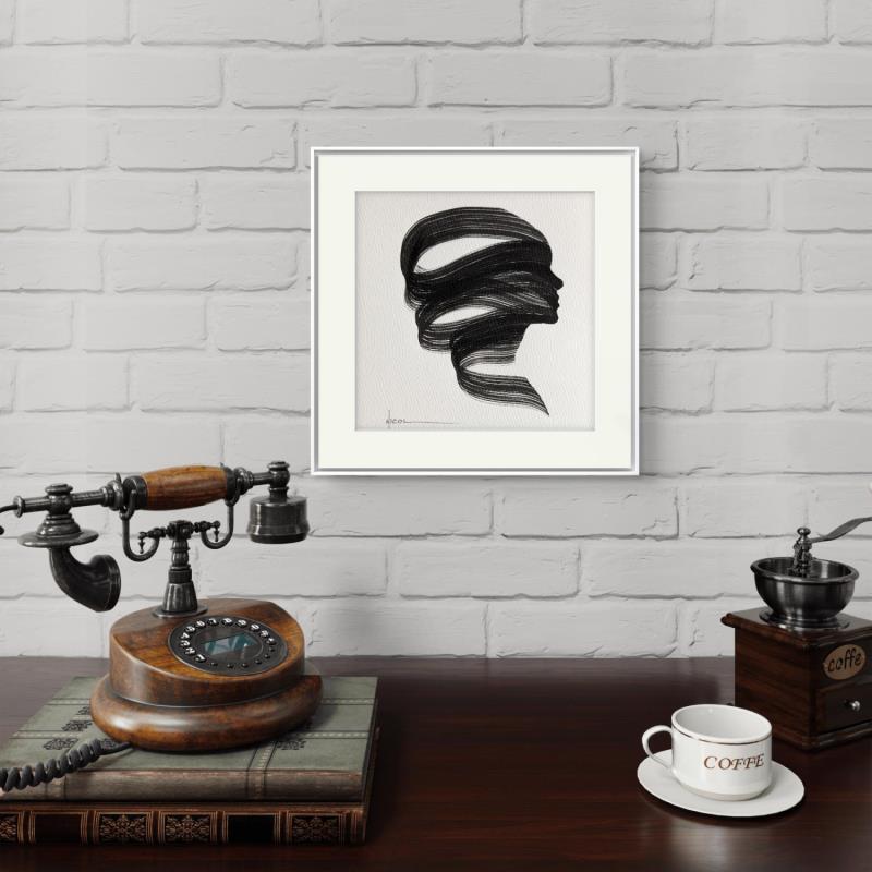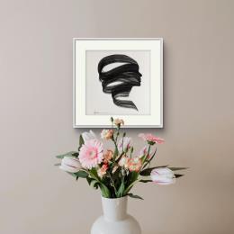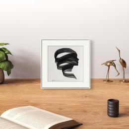 This unique and original contemporary artwork "Time CCCXXIII" on the subjects of Minimalist, Black & White, Portrait has been created by the contemporary artist Nicol.