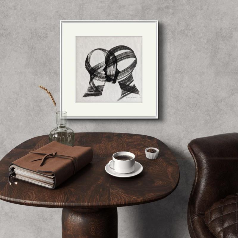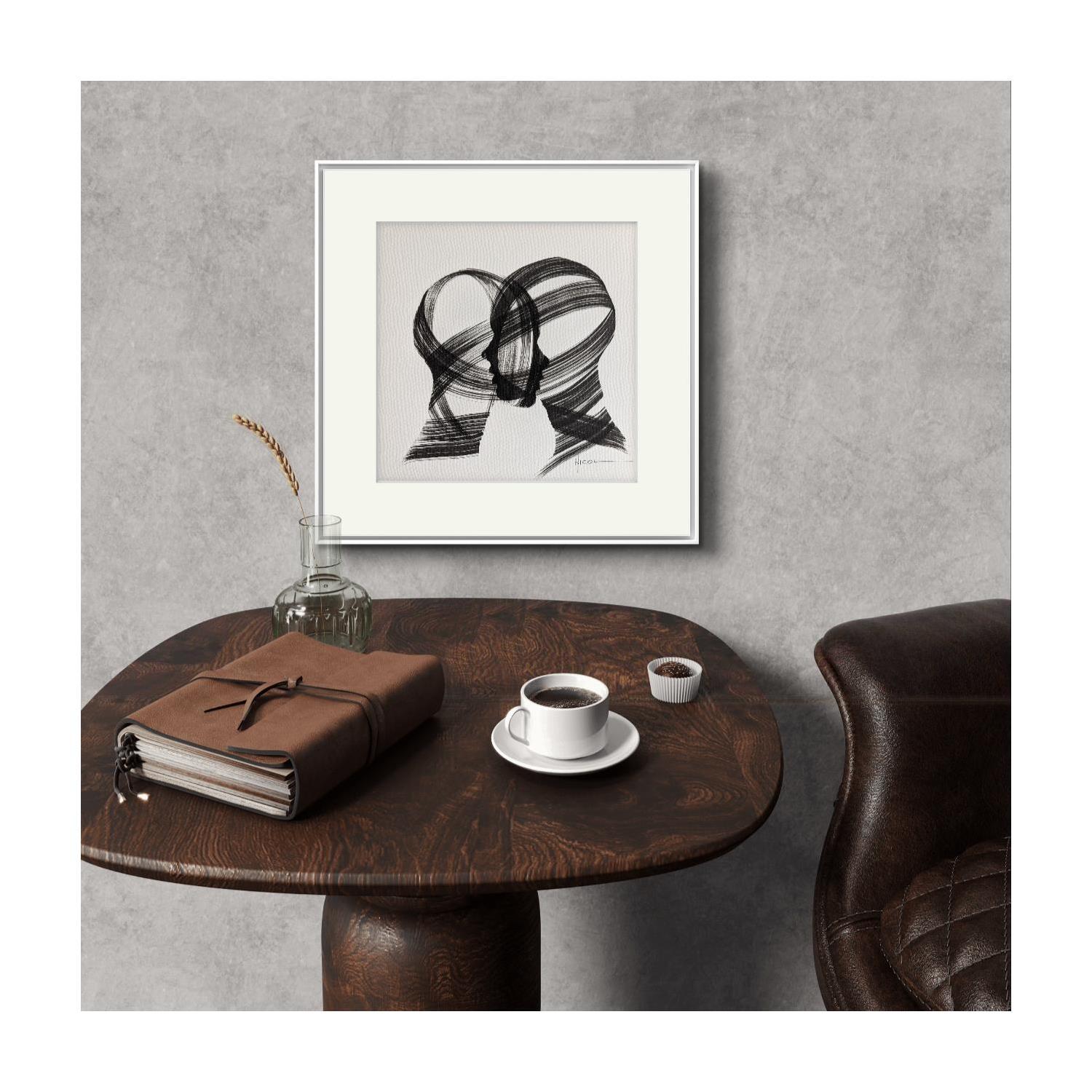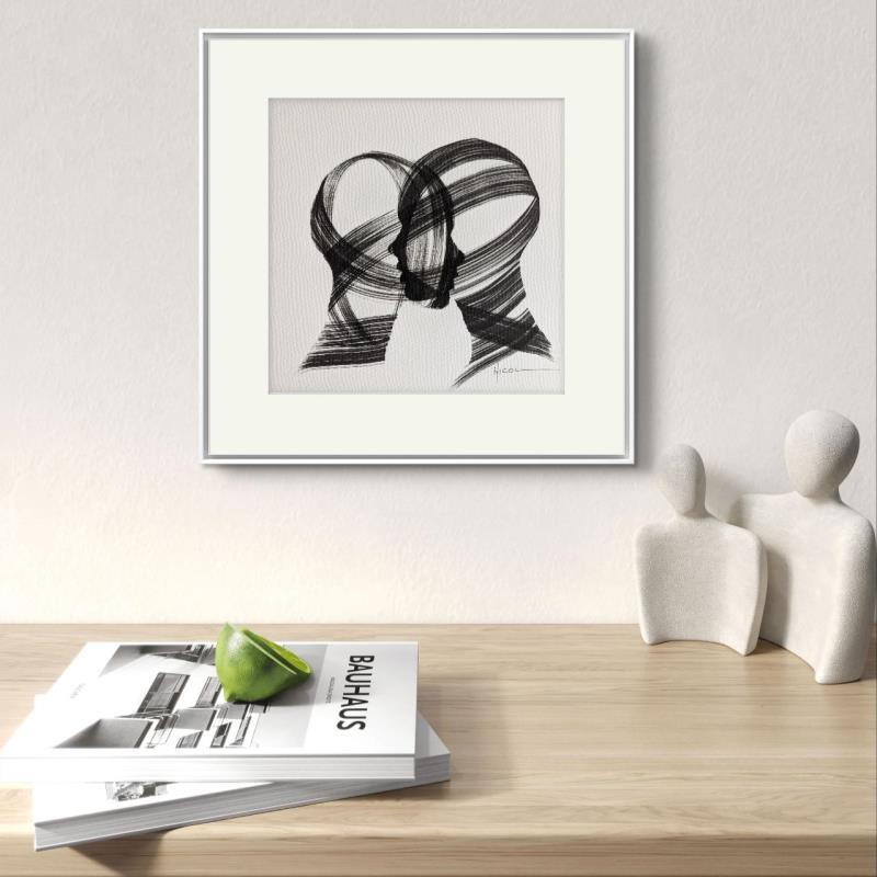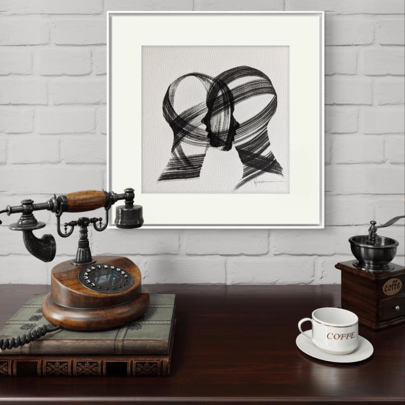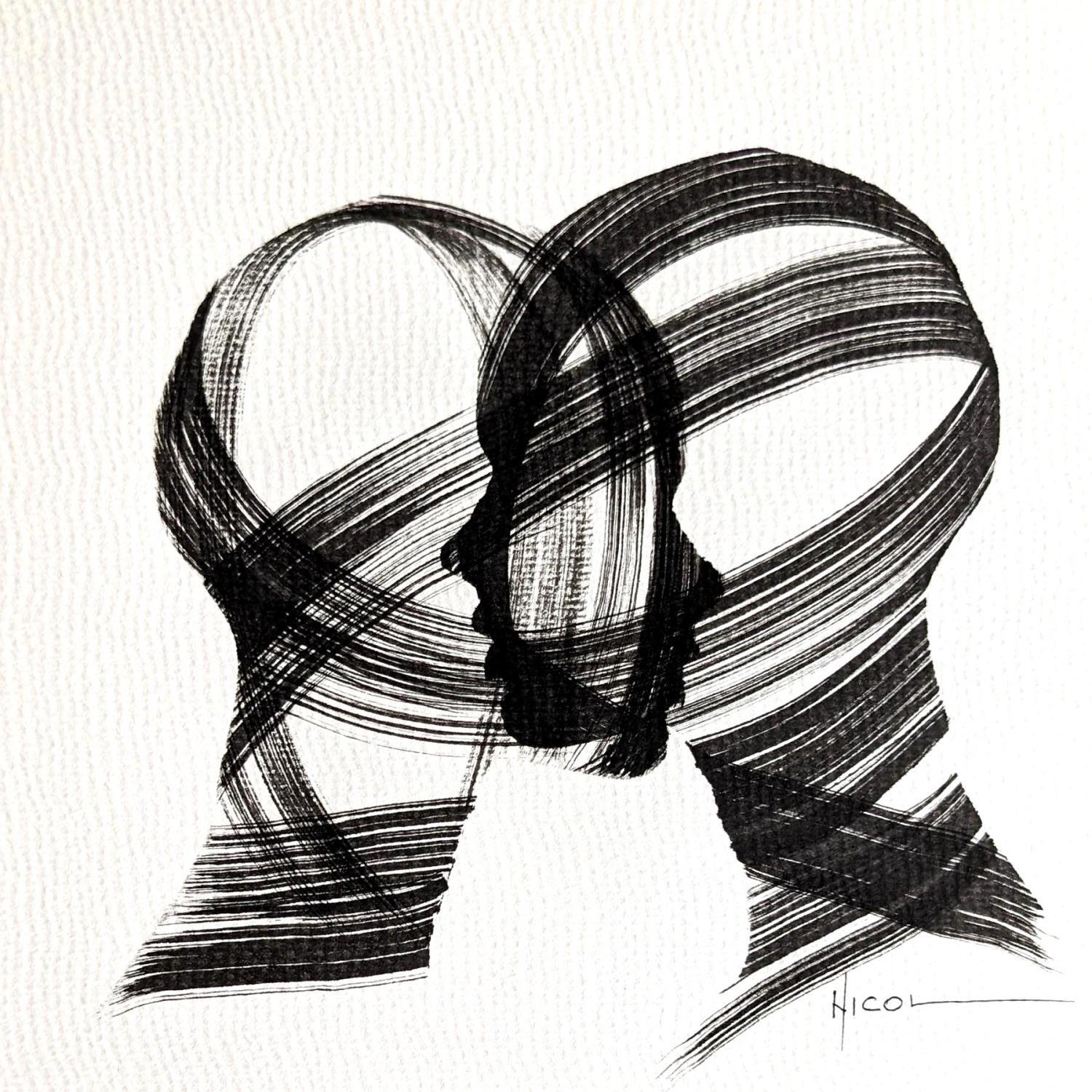 This unique and original contemporary artwork "Time CCCXXVII" on the subjects of Minimalist, Black & White, Portrait has been created by the contemporary artist Nicol.