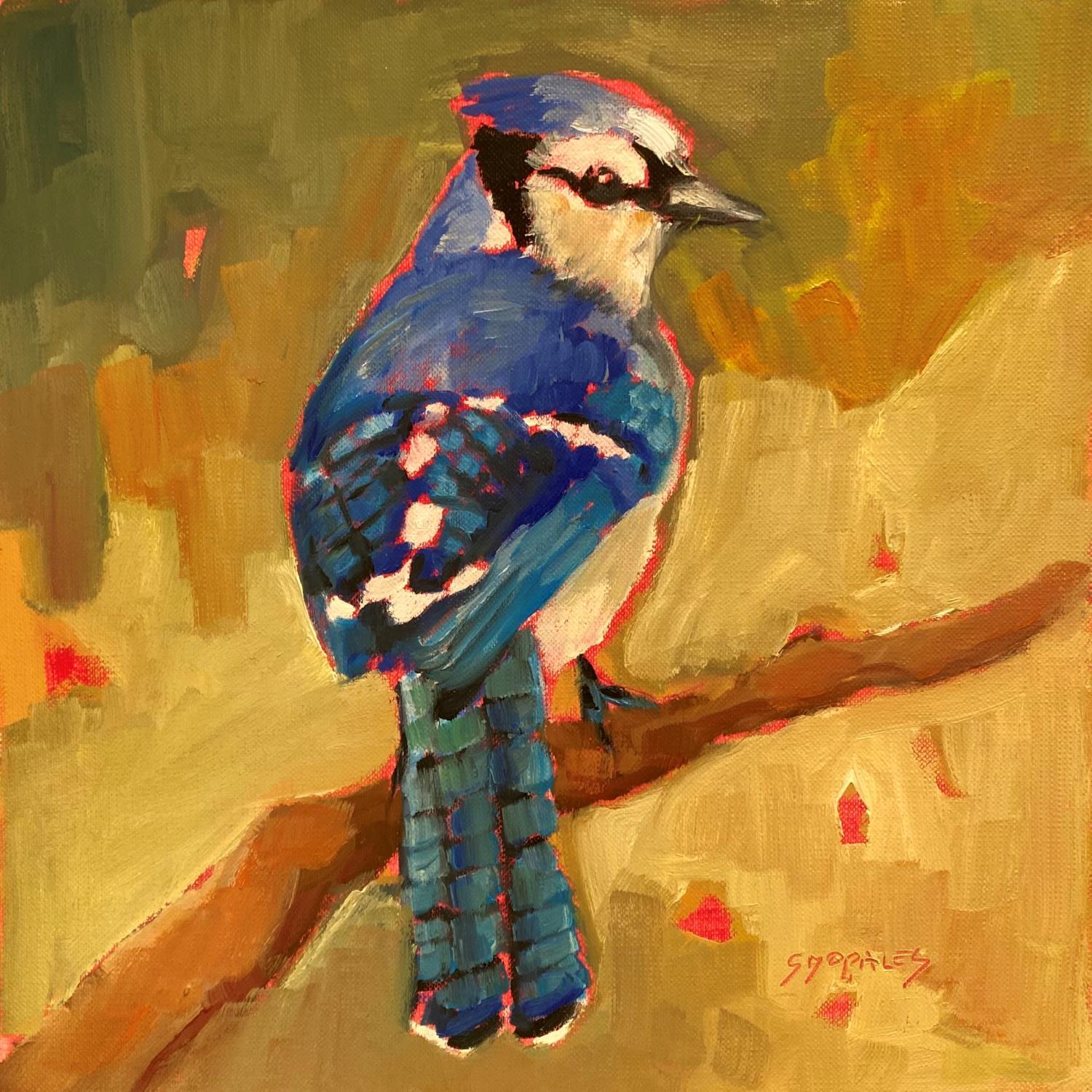 Painting geai bleu by Morales Géraldine | Painting Figurative Animals Oil