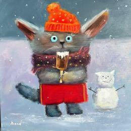 This unique and original contemporary artwork "The First Snow" on the subject of Animals has been created by the contemporary artist Bond Tetiana.