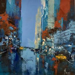 This unique and original contemporary artwork "NY in blue" on the subjects of Architecture, Urban has been created by the contemporary artist Dessein Pierre.