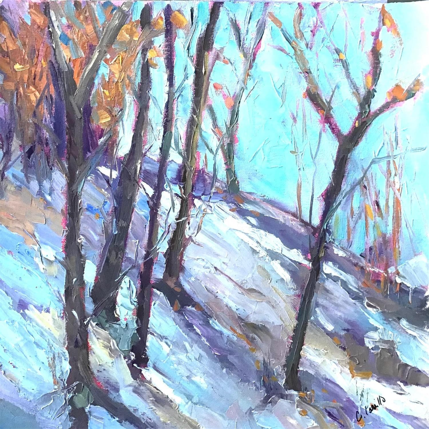 This unique and original contemporary artwork "Perfect powder" on the subject of Landscapes has been created by the contemporary artist Carrillo Cindy .