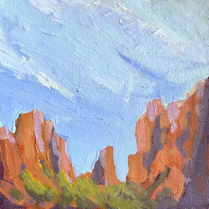 This unique and original contemporary artwork "Sedona Palette" on the subject of Landscapes has been created by the contemporary artist Carrillo Cindy .