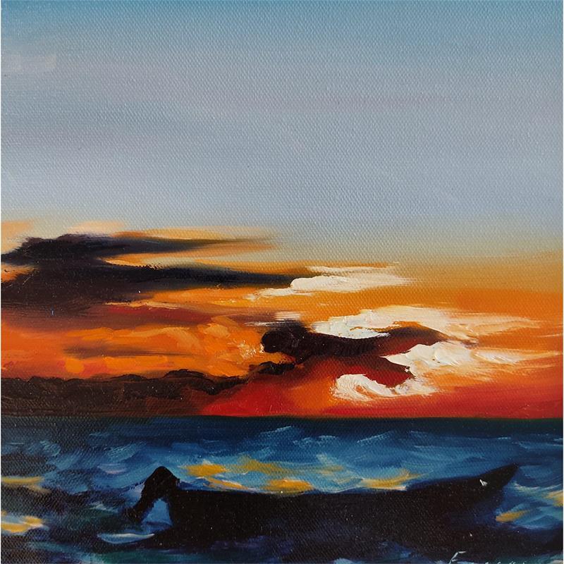 The artist used Oil medium on Canvas to create this Figurative, Small size painting.