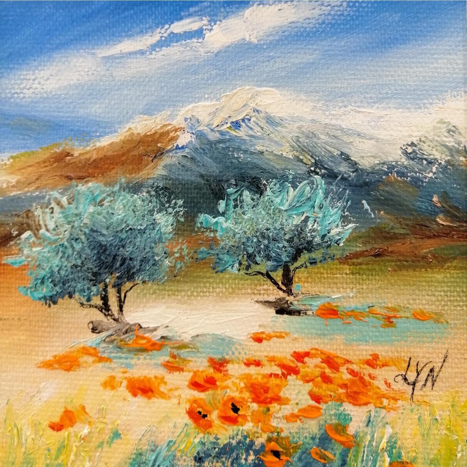 This unique and original contemporary artwork "mont ventoux" on the subject of Landscapes has been created by the contemporary artist Lyn.