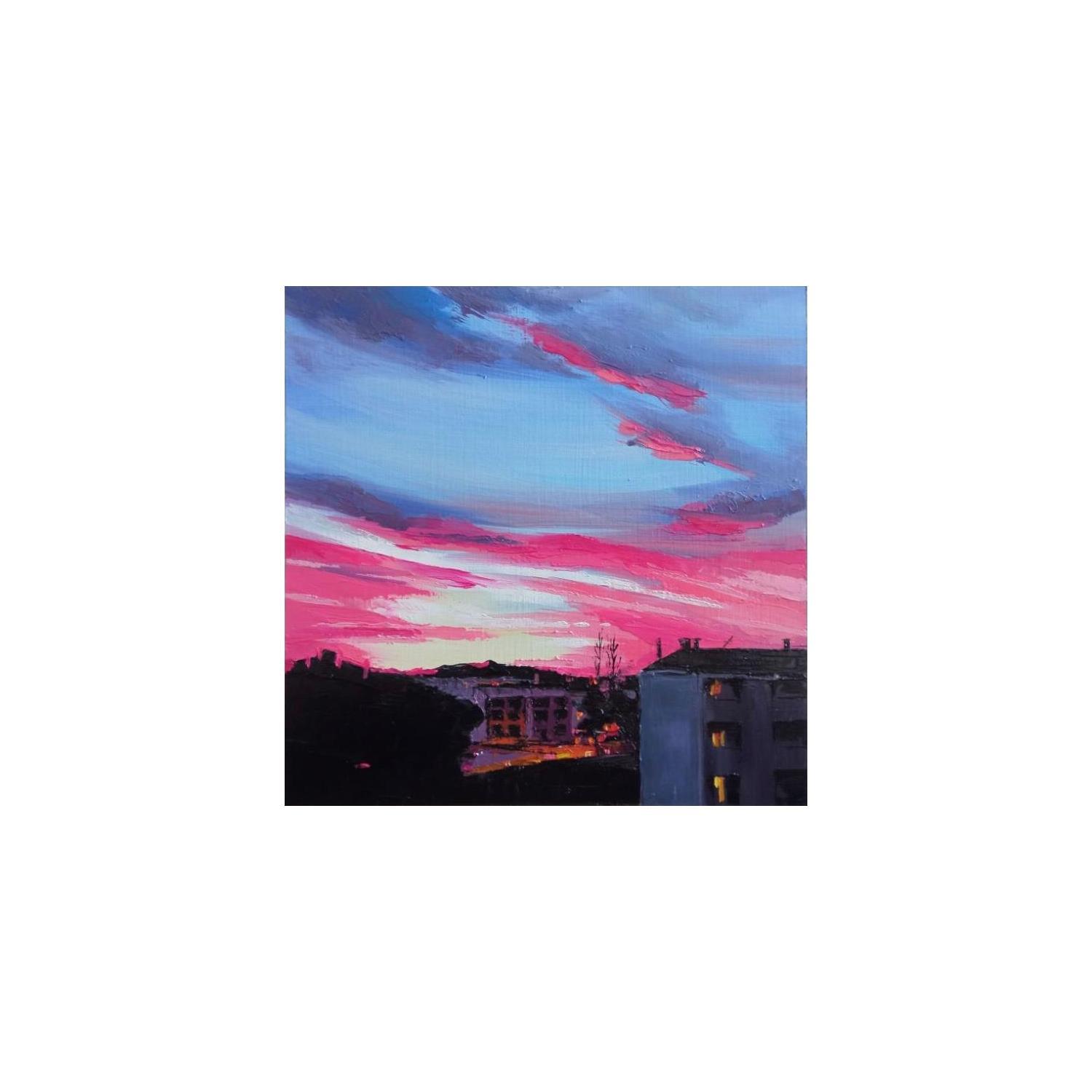 This unique and original contemporary artwork "Out the window" on the subjects of Landscapes, Urban has been created by the contemporary artist Chen Xi.