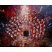 Le concert avec pianiste is a work that oscillates between abstraction in the periphery and naive art in the center and the representation of the instrumentalists. The motif is painted in knife and oil, and plays on a harmony of warm colors (shades of red, orange) and metallics (gold, copper, silver...). The square heads of the figures are inspired by Nicolas de Staël's "Parc des Princes" series. The staging highlights the central pianist, playing on circularity (the formation) and verticality (the background). The conductor, isolated and in a masterly posture, concludes the lower part of the work. The overall tone is flamboyant or baroque... depending on your sensibilities.