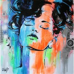 Anne Dubost is an award-winning French artist who enjoys capturing in her paintings people's fragility, determination, sensuality, as well as their transience. To find Anne Dubost's true intention one must read between the lines. The suggestion is indeed at the heart of her process, which spreads colours and textures in order to envelope the subjects with a halo. These circular movements, present in the paintings, lead the artist's characters in a dance that exacerbates the spinning palette, its tonalities and the contrasts packed with energy. A luminous work that contains all the vibrations of the world or, in the words of Régis Broustet, "a palette of spinning colours, much like a bouquet of fireworks".