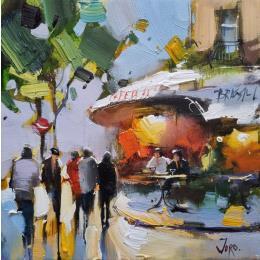 This unique and original contemporary artwork "Afternoon drink in Montreal" on the subject of Urban has been created by the contemporary artist Joro.