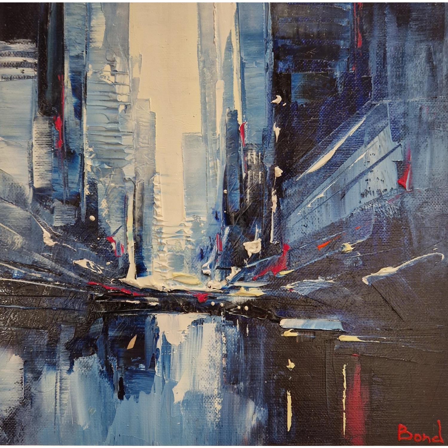 This unique and original contemporary artwork "DARK STREET" on the subject of Urban has been created by the contemporary artist Bond Tetiana.