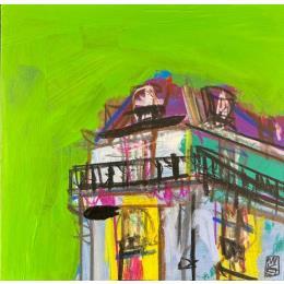 This unique and original contemporary artwork "L'immeuble en direction du boulevard" on the subjects of Architecture, Urban has been created by the contemporary artist Anicet Olivier.