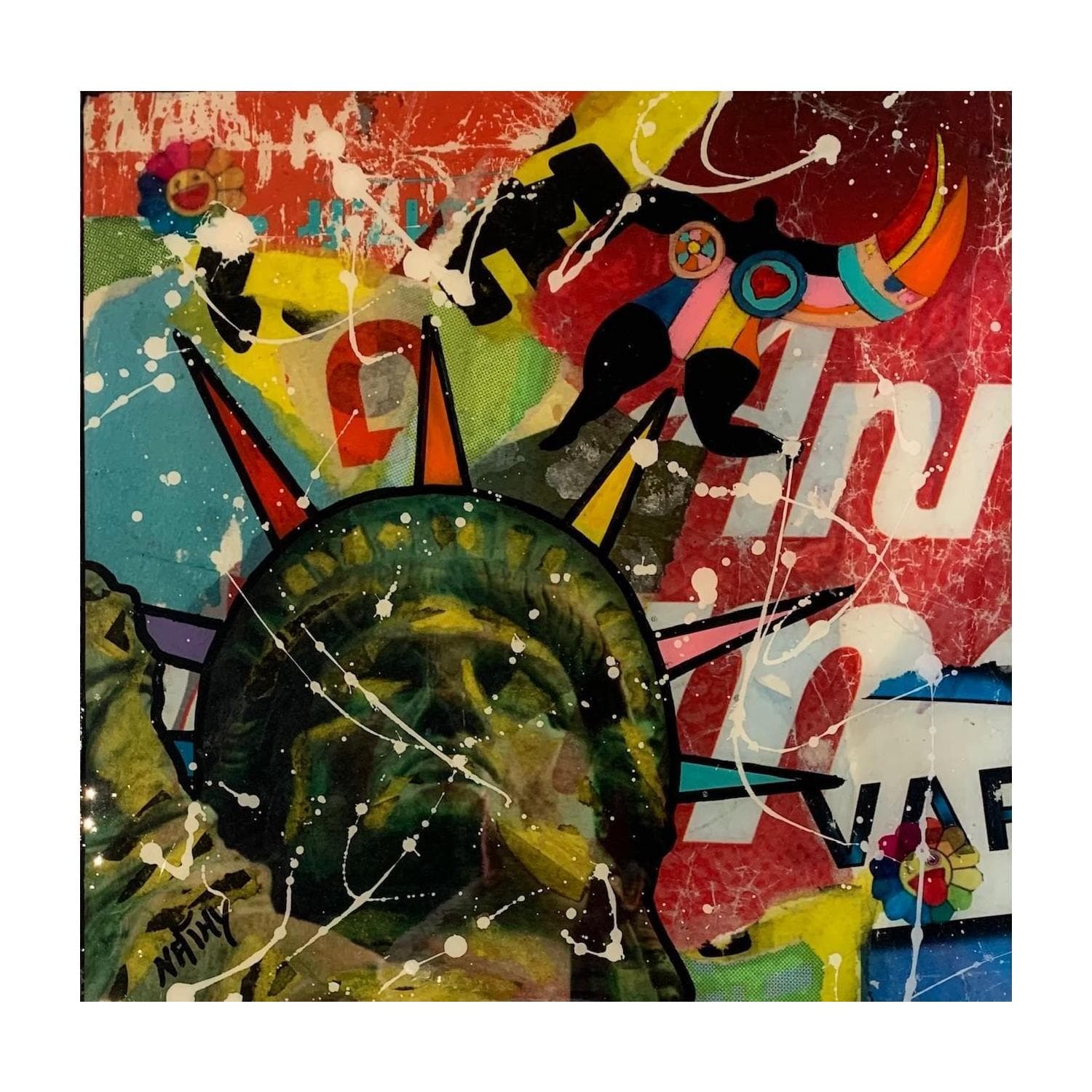 This unique and original contemporary artwork "Liberty" on the subject of Pop icons has been created by the contemporary artist Nathy.