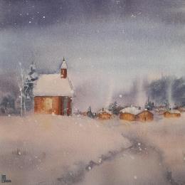 Winter EveningPainting Winter Evening by Lida Khomykova | Painting Figurative Watercolor