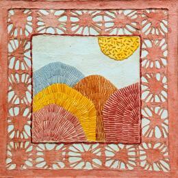 The artist used embroidery and watercolor media on Paper to create this Subject matter, Small size painting.
