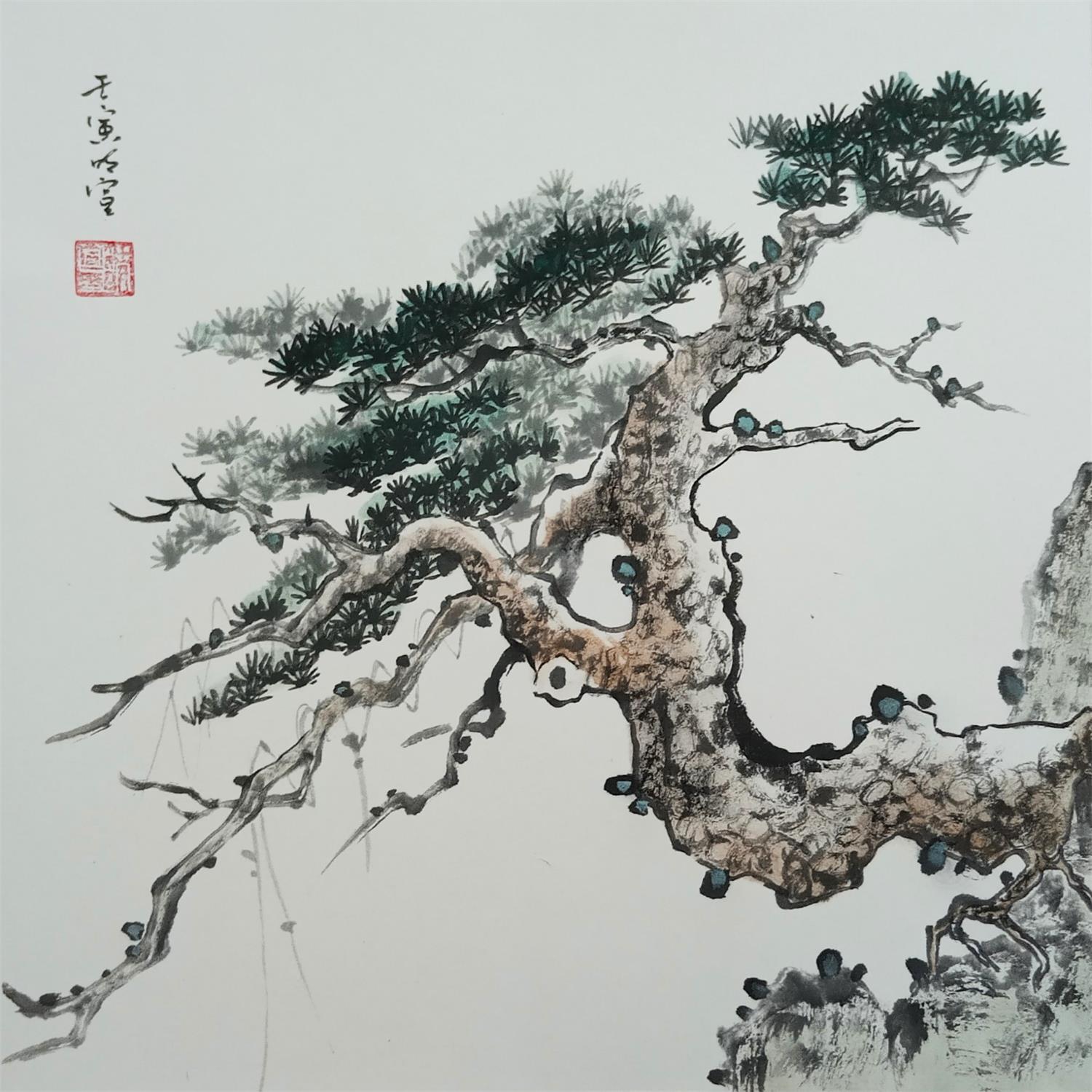 This unique and original contemporary artwork "Pine tree" on the subjects of Nature, Landscapes has been created by the contemporary artist Du Mingxuan.