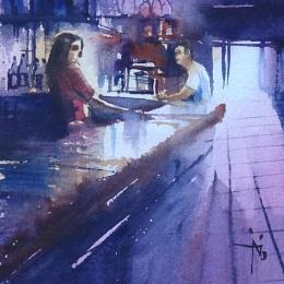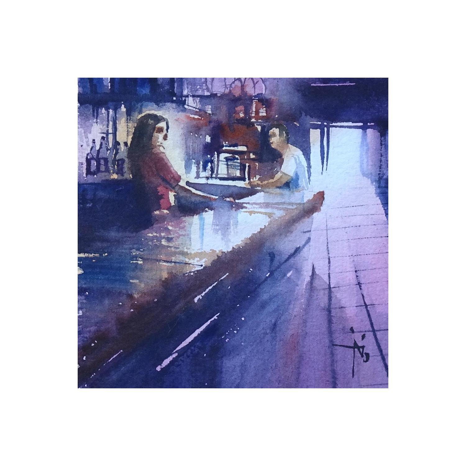Painting Un dernier verre... by Abbatucci Violaine | Painting Figurative Watercolor