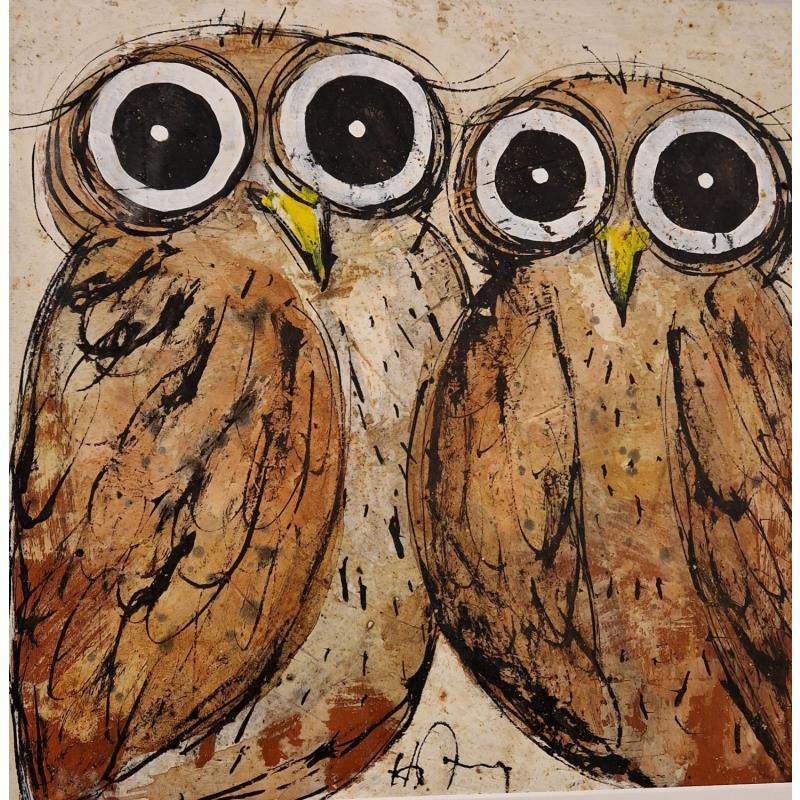 Herve grew up in the Southern Mediterranean region and nothing predestined him for an artistic career. He began his working life rather chaotically and carried out various professions before working in metallurgy for 8 years. It was only by chance that he began to paint. On moving house and decorating his apartment, he looked for art based on animals, but finding nothing, he began creating and decorating the walls with his own paintings. His family then discovered his talent and encouraged him to do become an artist. Various meetings and collaborations with decoration businesses gave Hervé the opportunity to paint freely and exhibit for the first time. He contributed to another artist’s ceramics work and the experience convinced him to embark on an artistic career. More fabulist than naturist, Hervé endows his animal characters with complexity, transforming the bestiary inherited from the medieval tradition, rock paintings and Far Eastern Art.