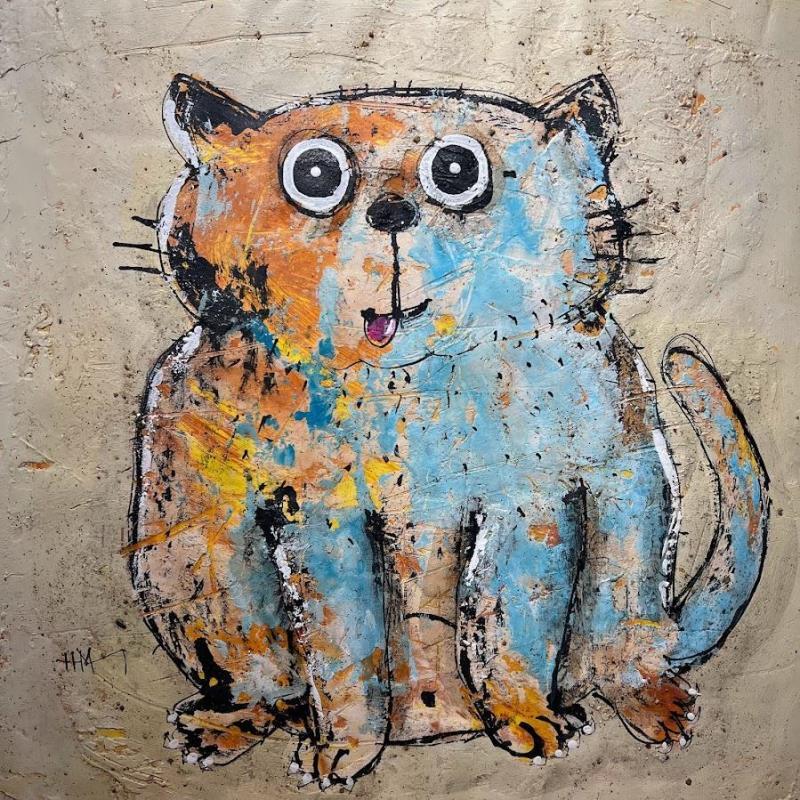 Herve grew up in the Southern Mediterranean region and nothing predestined him for an artistic career. He began his working life rather chaotically and carried out various professions before working in metallurgy for 8 years. It was only by chance that he began to paint. On moving house and decorating his apartment, he looked for art based on animals, but finding nothing, he began creating and decorating the walls with his own paintings. His family then discovered his talent and encouraged him to do become an artist. Various meetings and collaborations with decoration businesses gave Hervé the opportunity to paint freely and exhibit for the first time. He contributed to another artist’s ceramics work and the experience convinced him to embark on an artistic career. More fabulist than naturist, Hervé endows his animal characters with complexity, transforming the bestiary inherited from the medieval tradition, rock paintings and Far Eastern Art.