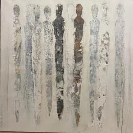 The artist used Acrylic, Gluing, Sand media on Canvas board to create this Raw art, Large size painting.