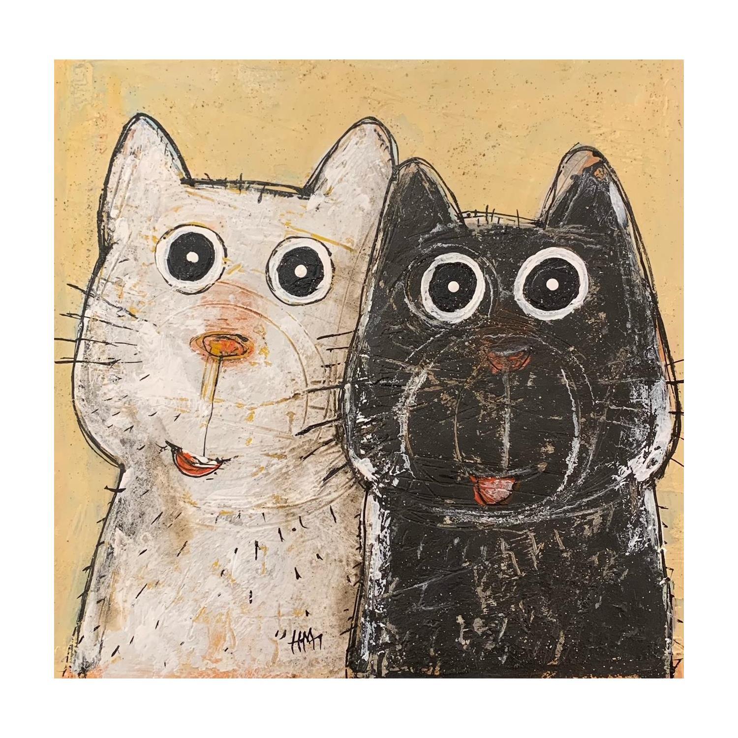 This unique and original contemporary artwork "Chat noir / Chat blanc" on the subject of Animals has been created by the contemporary artist Maury Hervé.