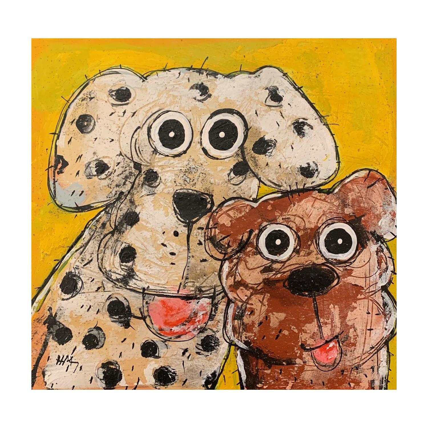 This unique and original contemporary artwork "Les 2 chiens" on the subject of Animals has been created by the contemporary artist Maury Hervé.