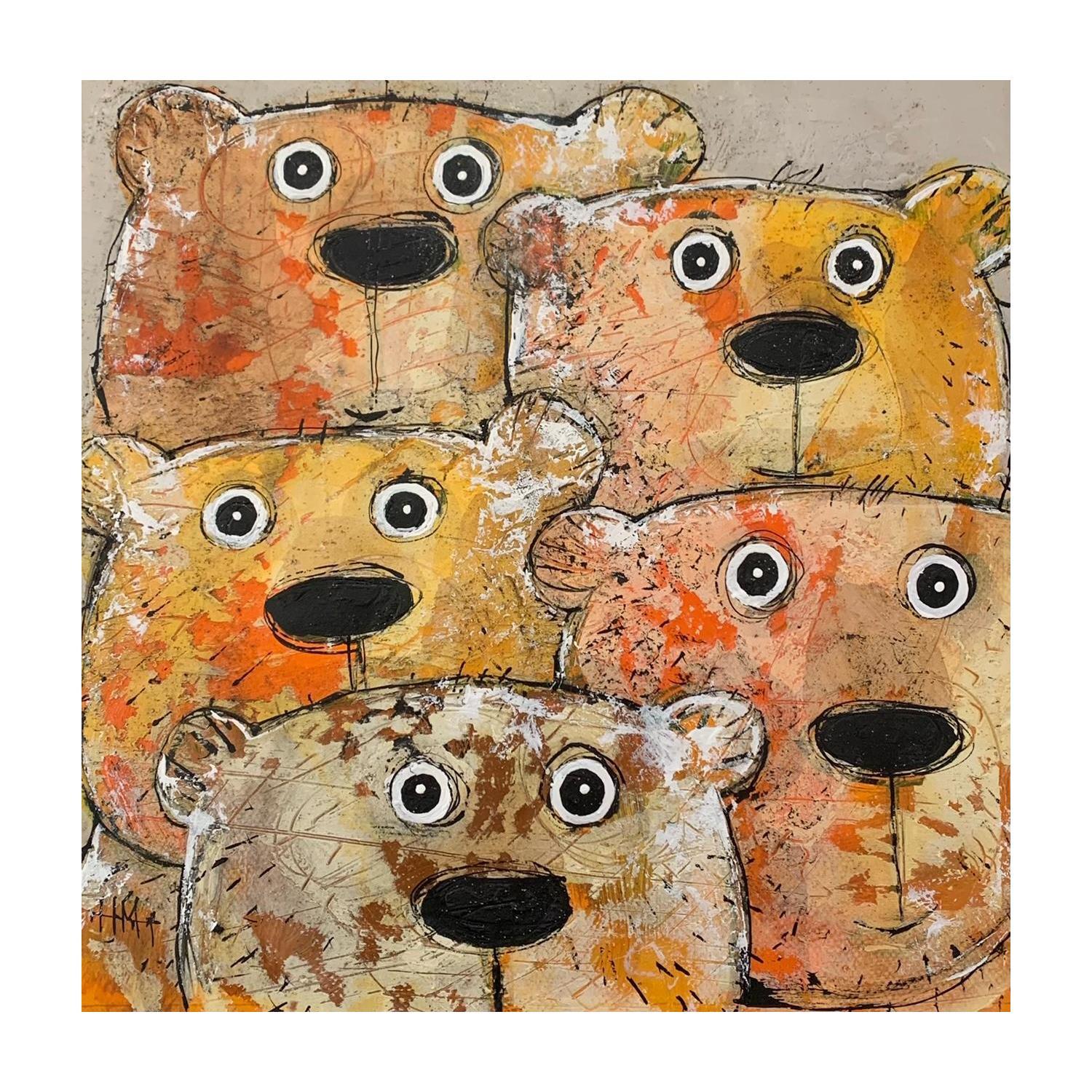 This unique and original contemporary artwork "les 5 Ours" on the subject of Animals has been created by the contemporary artist Maury Hervé.