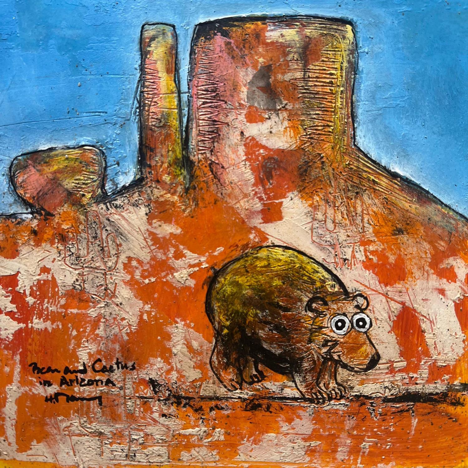 This unique and original contemporary artwork "Bear and Cactus" on the subject of Animals has been created by the contemporary artist Maury Hervé.