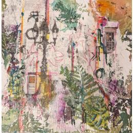 The artist used Acrylic, Gluing, Oil media on Paper to create this Surrealism, Small size painting.
