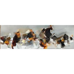 The artist used Oil medium on Canvas to create this Abstract, Large size painting.