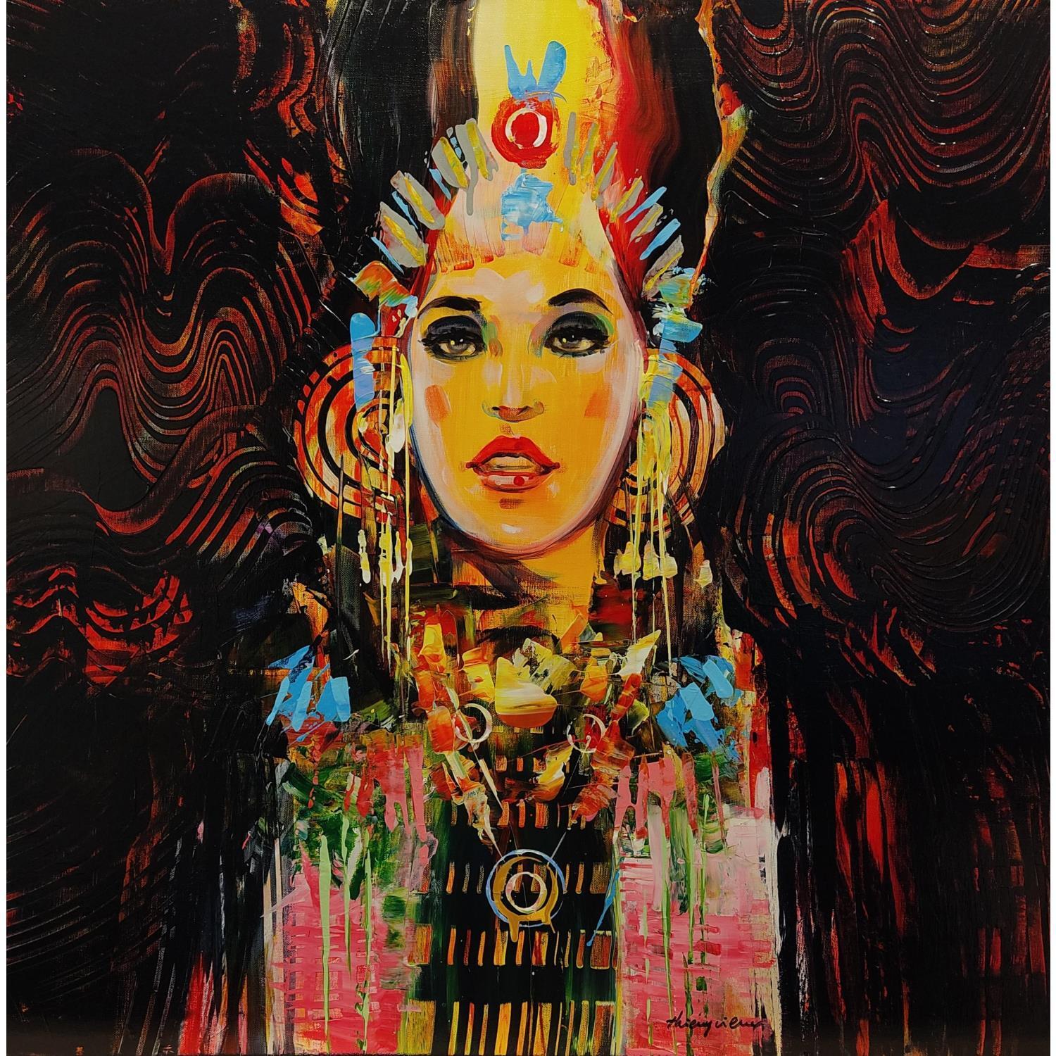 This unique and original contemporary artwork "Princesse Inca" on the subject of Portrait has been created by the contemporary artist Vieux Thierry.