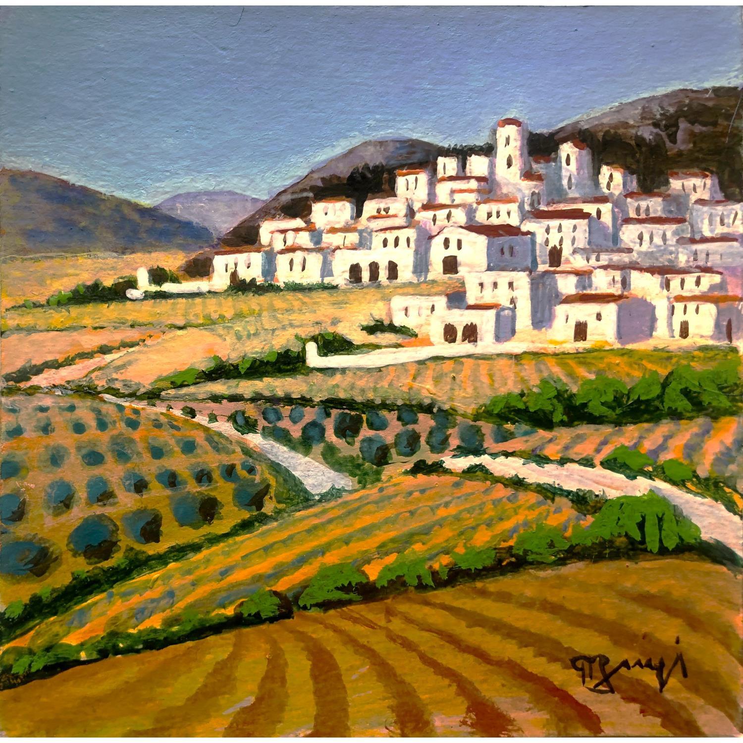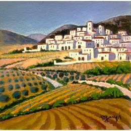 This unique and original contemporary artwork "AP63 VILLAGE ANDALOU" on the subjects of Urban, Nature, Landscapes has been created by the contemporary artist Burgi Roger.