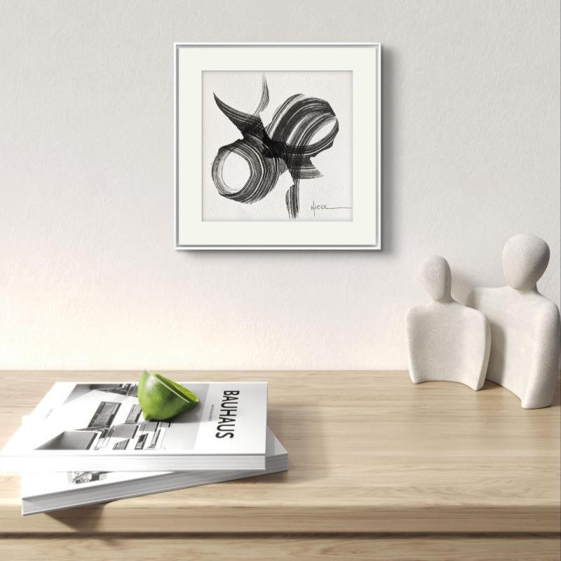 This unique and original contemporary artwork "Time CCCXI" on the subjects of Minimalist, Black & White, Portrait has been created by the contemporary artist Nicol.