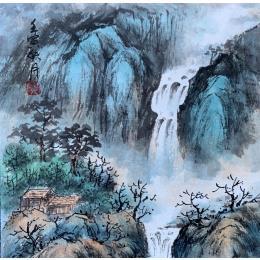 This unique and original contemporary artwork "Waterfall 4" on the subject of Landscapes has been created by the contemporary artist Yu Huan Huan.