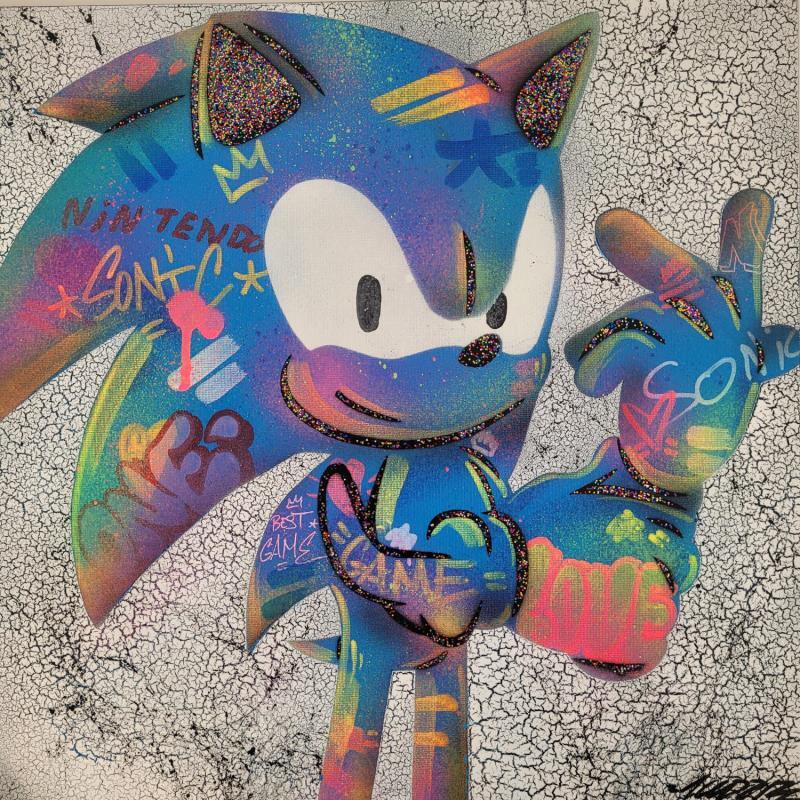 This unique and original contemporary artwork "Sonic" on the subject of Pop icons has been created by the contemporary artist Kedarone.