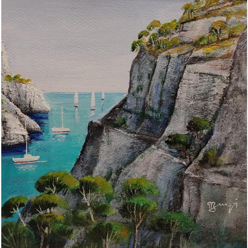 This unique and original contemporary artwork "Les terrasses" on the subject of Nature has been created by the contemporary artist Burgi Roger.