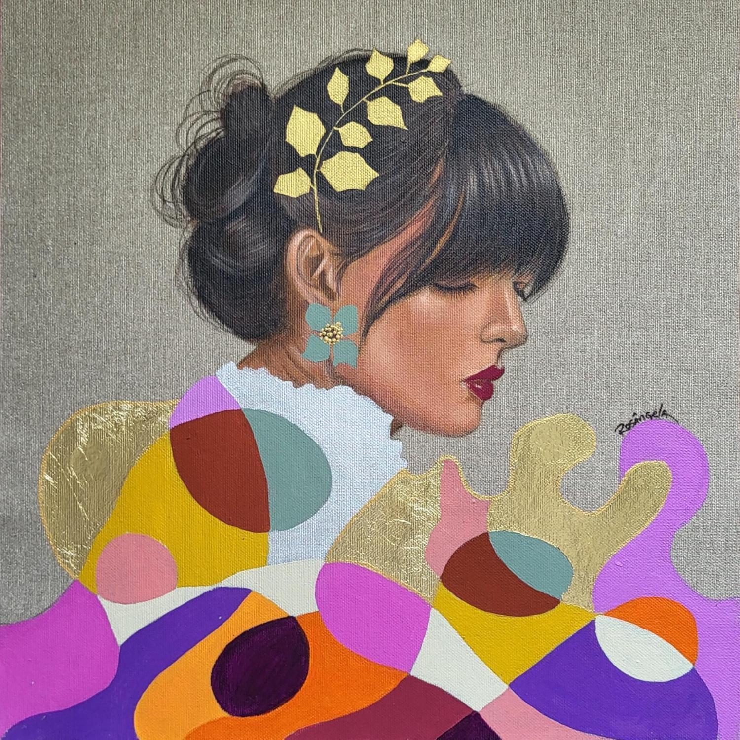 This unique and original contemporary artwork "Alice" on the subject of Portrait has been created by the contemporary artist Rosângela.