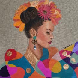This unique and original contemporary artwork "Andreza" on the subject of Portrait has been created by the contemporary artist Rosângela.