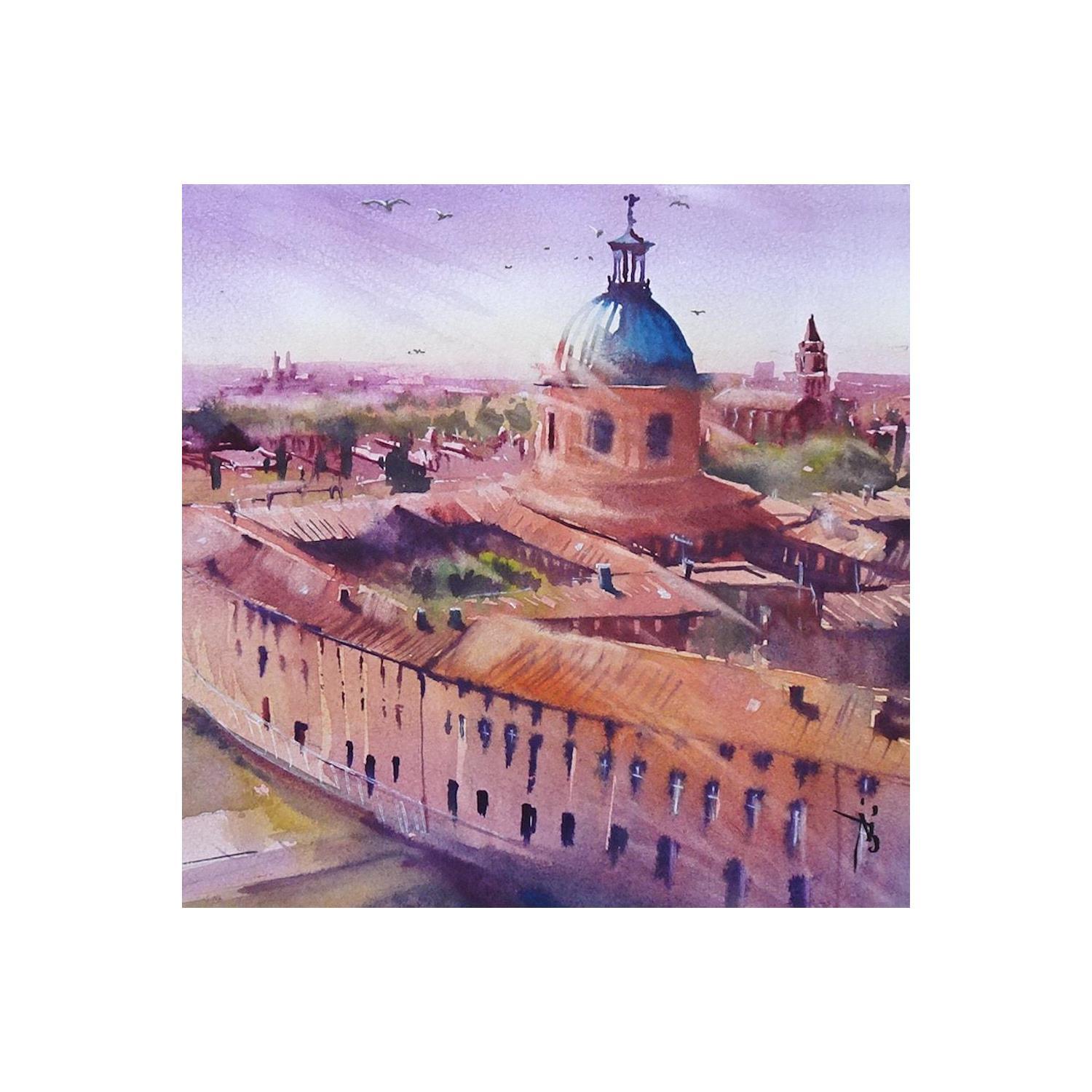 Painting Le dôme aérien by Abbatucci Violaine | Painting Figurative Watercolor