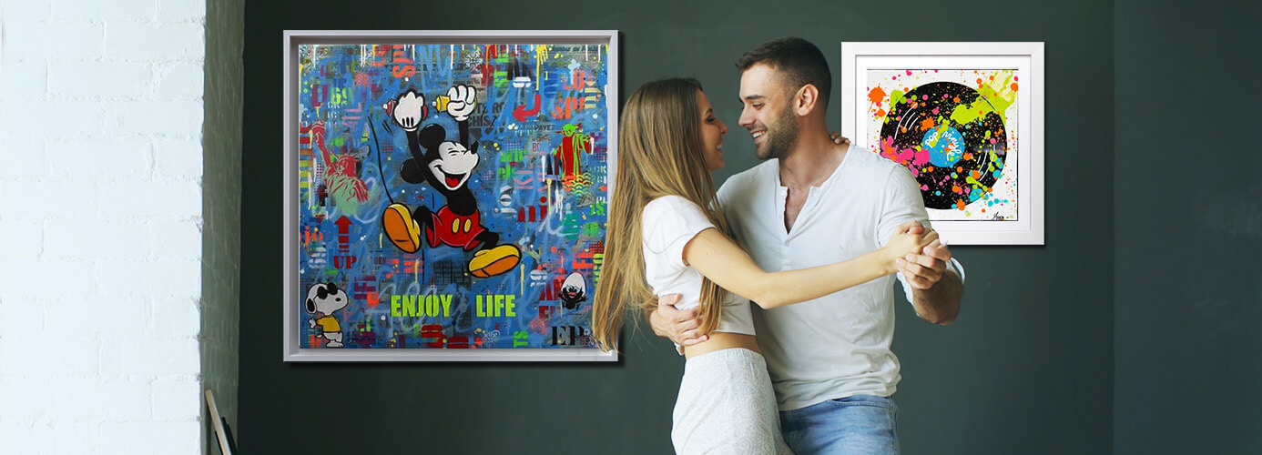 As for Sergi Mestres, the Spanish artist of our collection, he has a knack at re-looking the greatest pop culture figures: Audrey Hepburn, Asterix and Obelix or even Jean-Michel Basquiat are painted in an explosive manner, through a street art inspiration. Along with spray paint and acrylic splinters, Sergi Mestres fills his work with crazy energy- which is really contagious! A genuine party for the senses.